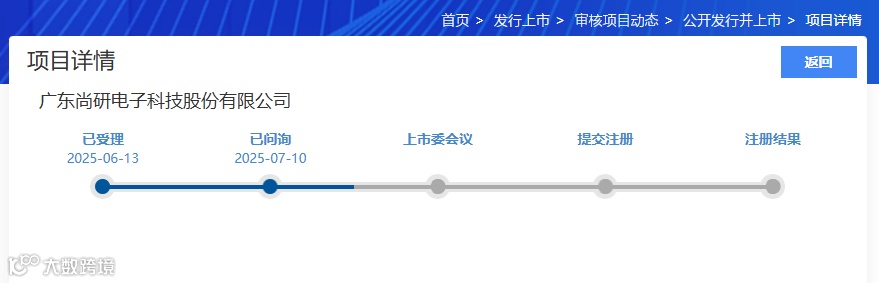 尚研科技北交所IPO于2025年6月13日获受理,2025年7月10日北交所下发了第一次审核问询函。
