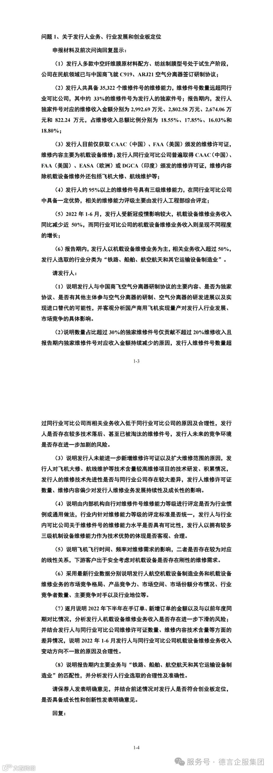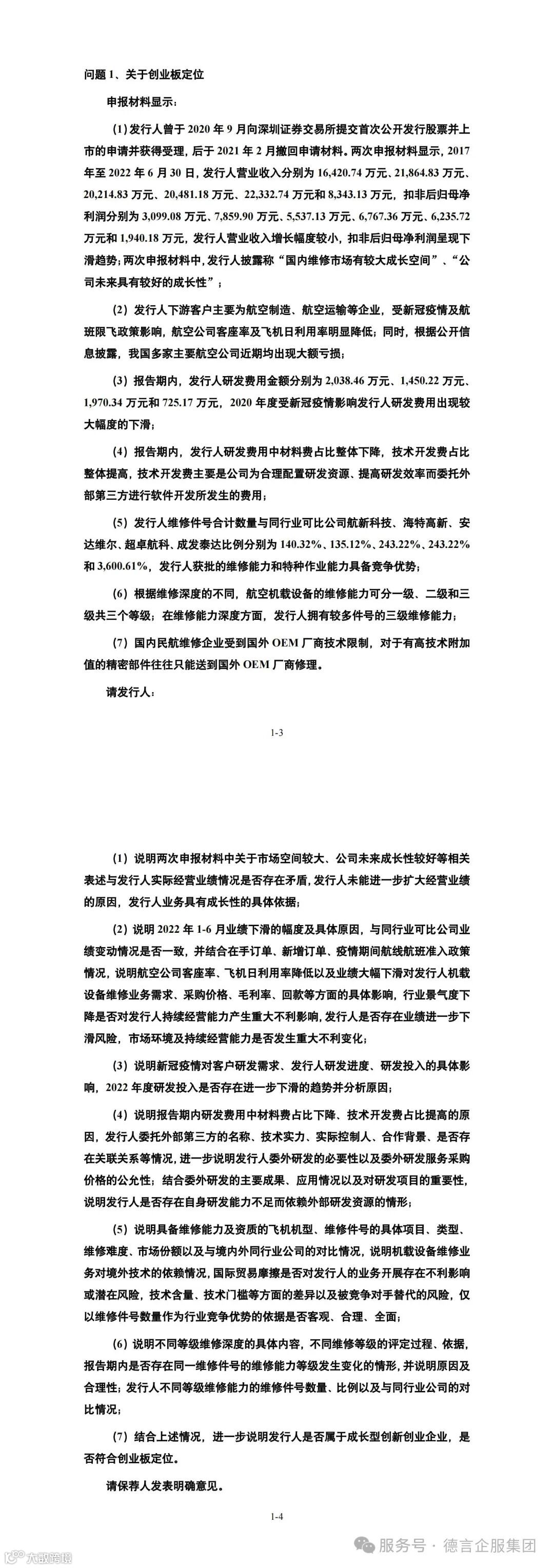 本次鹰之航IPO进程中审核问询问题中知识产权方面的主要问询点1为【创业板定位】,上市委在首轮问询和二轮问询中重点问询了: