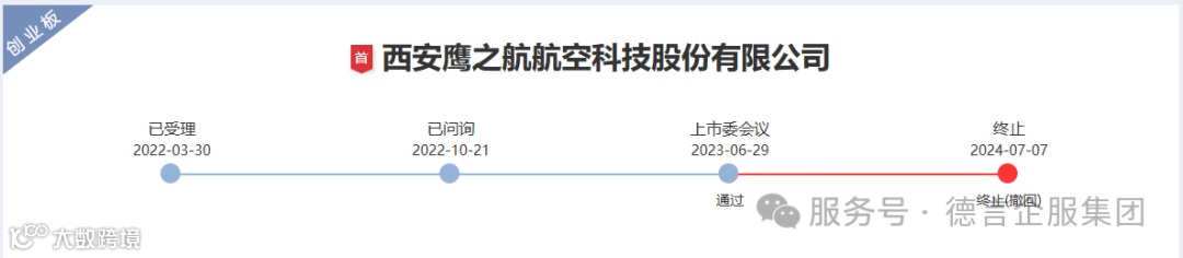 2024年7月7日,深交所公告,因西安鹰之航航空科技股份有限公司(以下简称“鹰之航”)撤回发行上市申请,根据相关规定,终止其首次公开发行股票并在创业板上市审核。