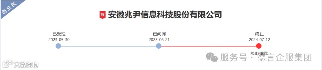 2024年7月12日,深交所公告,因安徽兆尹信息科技股份有限公司(以下简称“兆尹科技”)撤回发行上市申请,根据相关规定,终止其首次公开发行股票并在创业板上市审核。