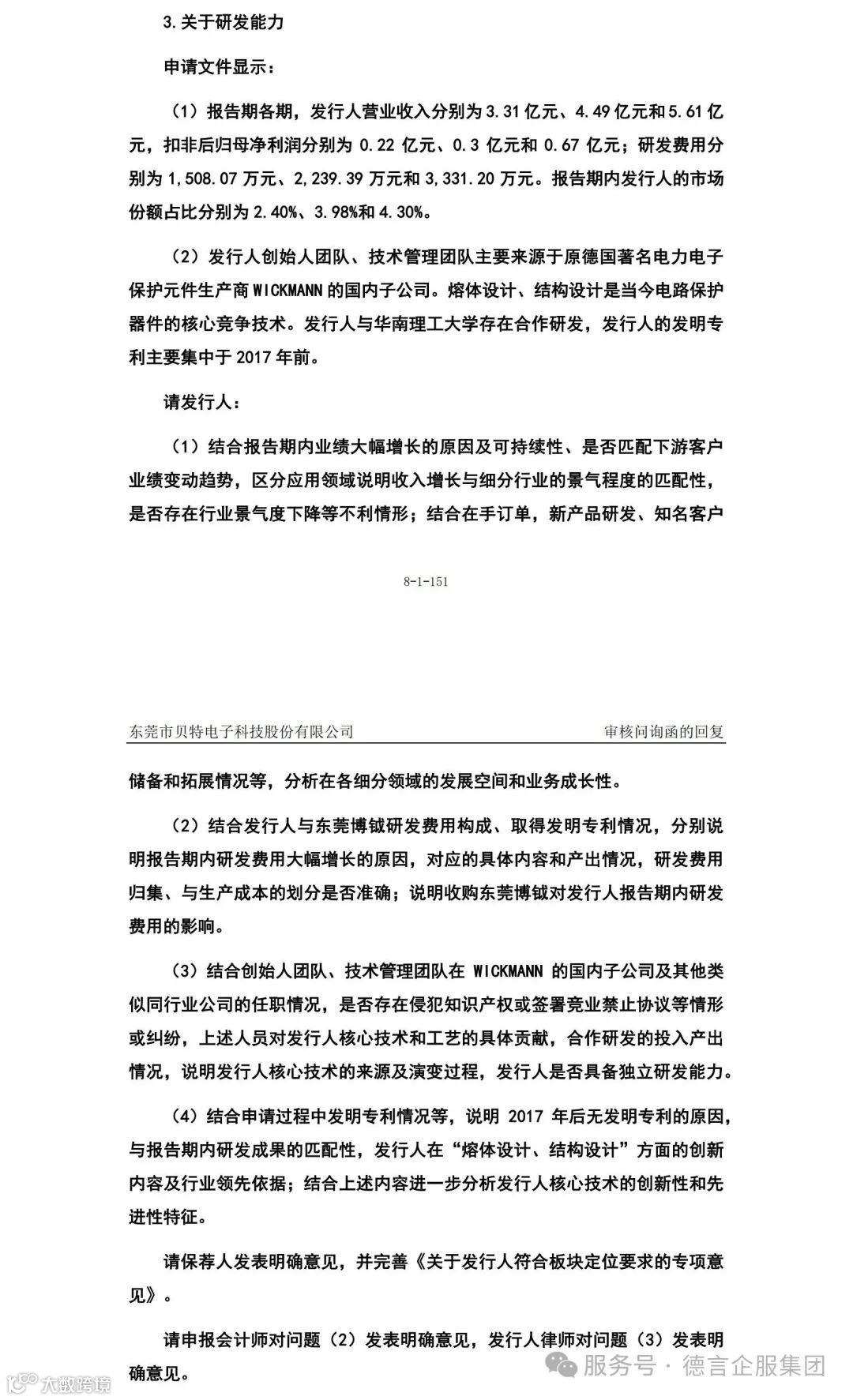 本次贝特电子IPO进程中审核问询问题中知识产权方面的主要问询点1为【研发能力】,上市委在首轮问询中重点问询了: