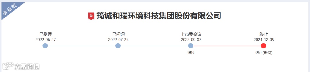 12月5日,深交所公告,因筠诚和瑞环境科技集团股份有限公司(以下简称“筠诚和瑞”)撤回发行上市申请,根据相关规定,终止其首次公开发行股票并在创业板上市审核。