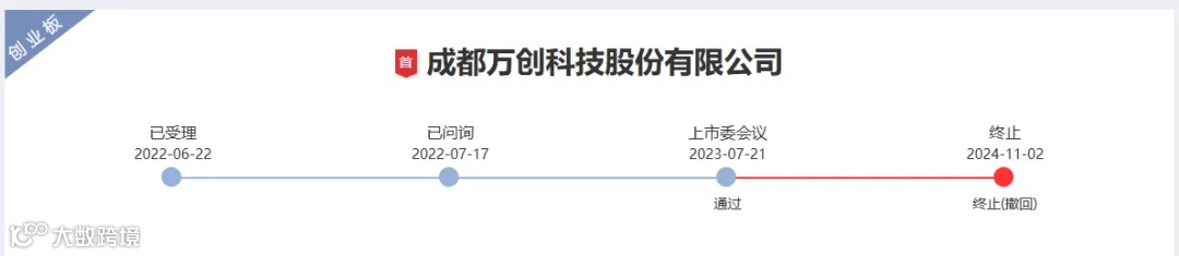 2024年11月2日,深交所公告,因成都万创科技股份有限公司(以下简称“万创科技”)撤回发行上市申请,根据相关规定,终止其首次公开发行股票并在创业板上市审核。