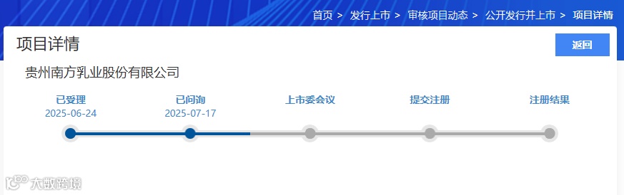 2025年7月17日,北交所披露了贵州南方乳业股份有限公司(以下简称“南方乳业”)关于第一轮审核问询函。