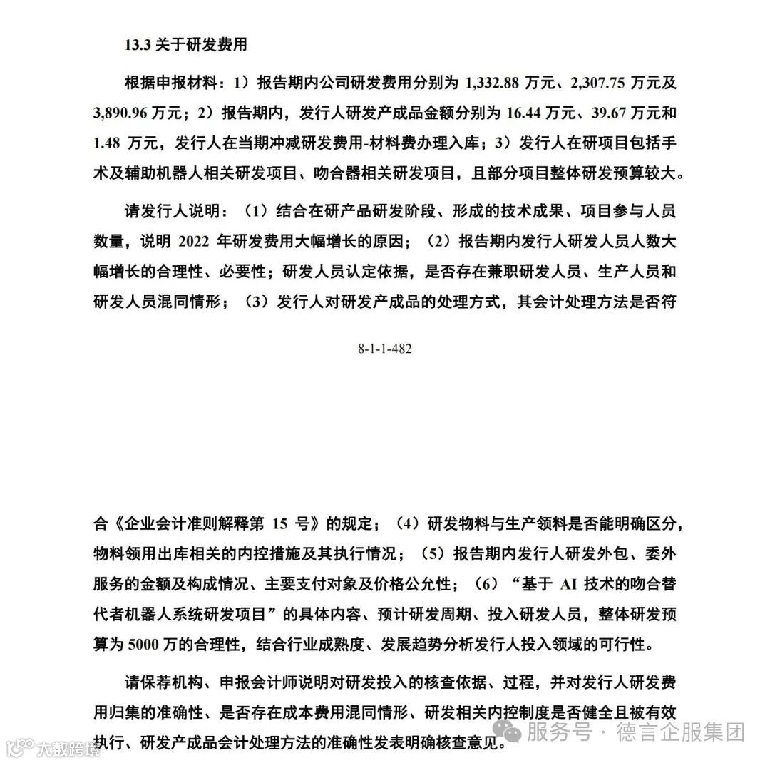 风和医疗IPO进程中审核问询问题中知识产权方面的主要问询点4为【研发费用】,上市委在首轮问询中重点问询了: