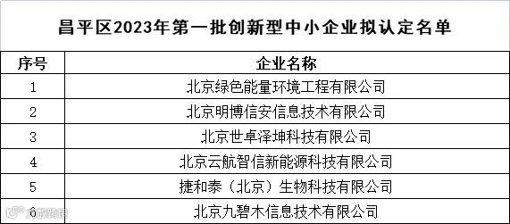 【公示】昌平区2023年第1批创新型中小企业拟认定名单公示