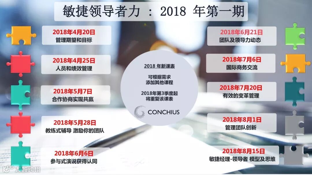 如果您已经按捺不住想要了解更多关于企业培训的具体时间,发送2018至CONCHIUS公众号获取时间表