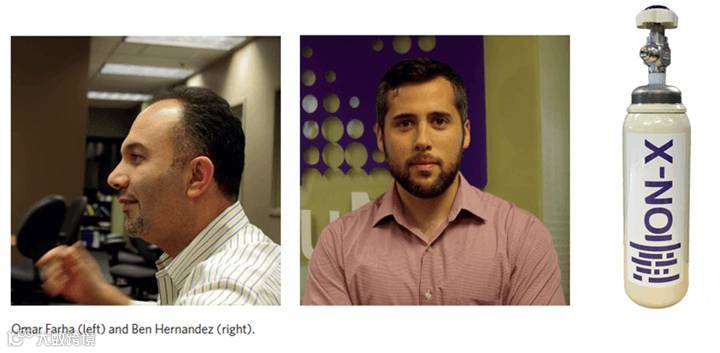 另一个公司NuMat Technologies也在今年的MOF2016大会上展示了他们的产品ION-X,这种产品主要是用于存储电子工业中使用的有毒气体。ION-X钢瓶也已经投入生产,其内部的MOF材料可以实现在正常气压下处理有毒气体,消除了高压带来的安全隐患。下图是NuMat的两位主要创始人Omar Farha和Ben Hernandez。再另外说一句,NuMat也是美国化学会(ACS)旗下的C&EN杂志推荐的2016年10个最值得关注的化学初创公司之一(点击阅读相关)。