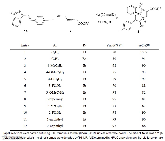 Table 2: Evaluation of different γ-substituted allenoates 2