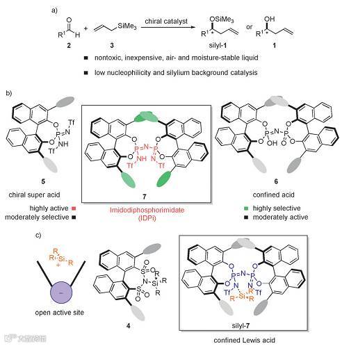 List课题组设计合成了一系列新颖的手性Brønsted酸催化剂,该类催化剂成功解决了不对称催化中长时间存在的问题,高效实现了首例通用的对映选择性的烯丙基三甲基硅对醛的加成反应。