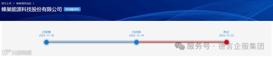 2023年12月22日,上交所公告,因蜂巢能源科技股份有限公司(以下简称“蜂巢能源”)撤回发行上市申请,根据相关规定,终止其首次公开发行股票并在科创板上市审核。