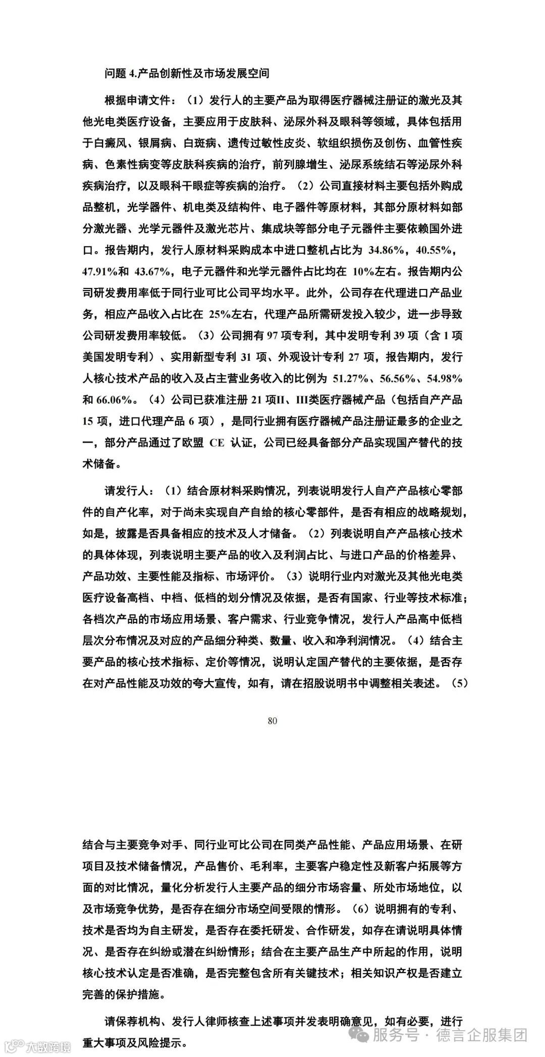 奇致激光IPO进程中审核问询问题中知识产权方面的主要问询点为1【产品创新性】,上市委在首轮问询中重点问询了:
