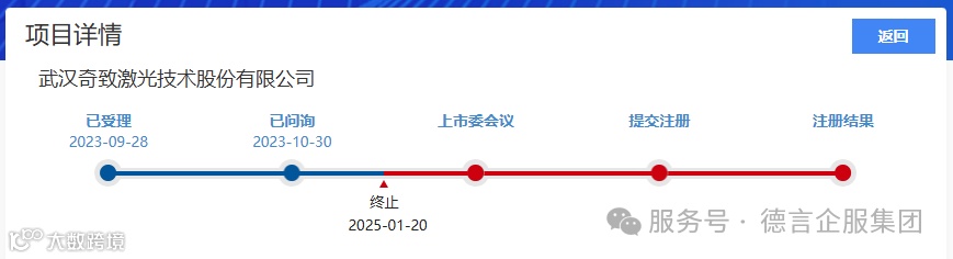 2025年2月7日,北交所公告,因武汉奇致激光技术股份有限公司(以下简称“奇致激光”)撤回发行上市申请,根据相关规定,终止其首次公开发行股票并在北交所上市审核。