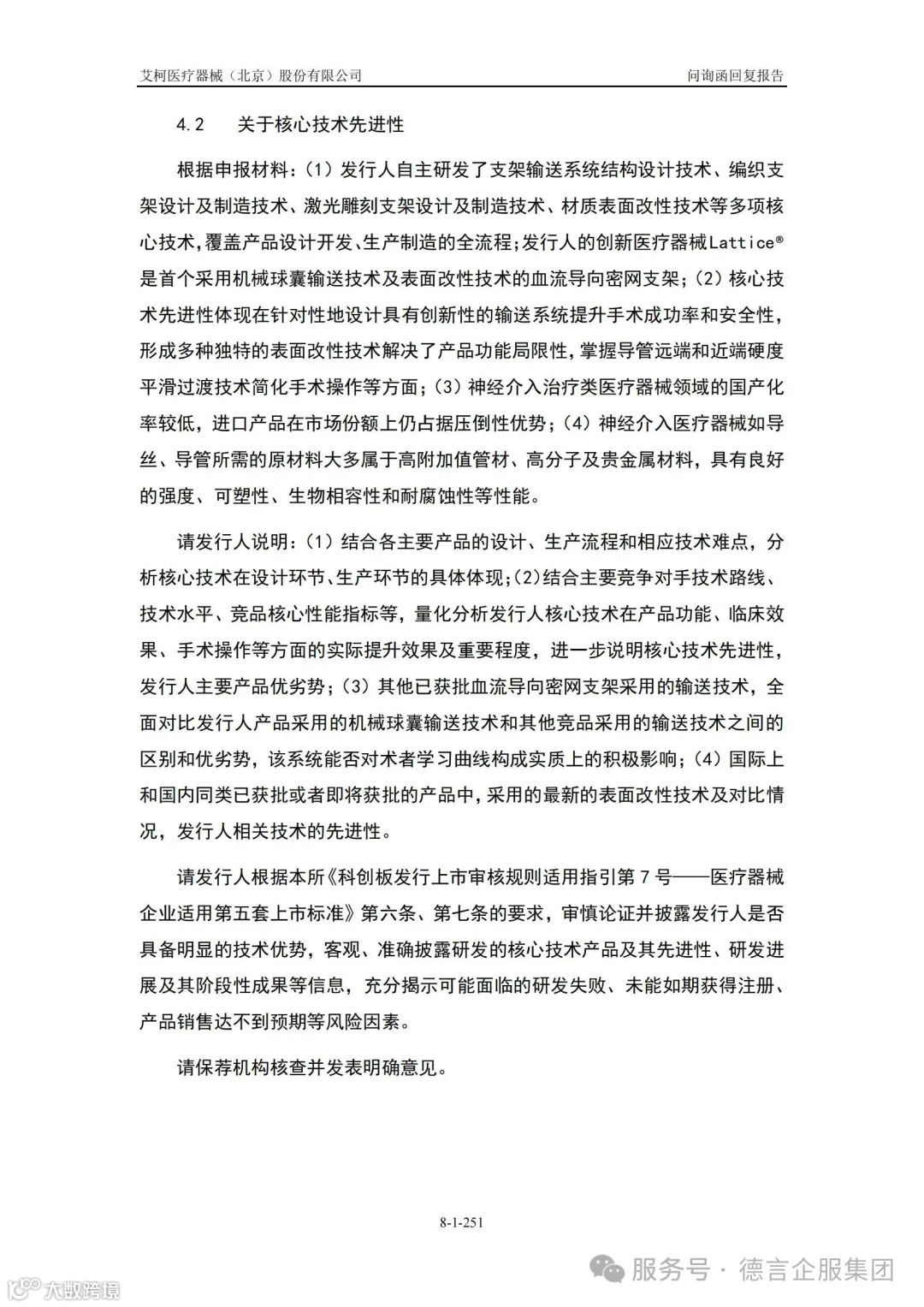 艾柯医疗IPO进程中审核问询问题中知识产权方面的主要问询点2为【核心技术先进性】,上市委在首轮问询中重点问询了: