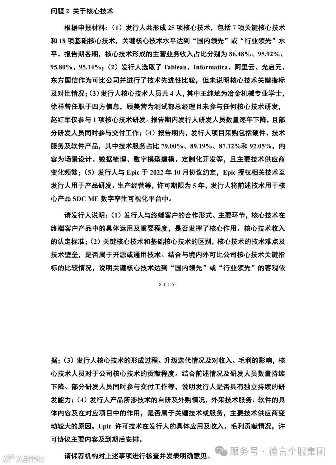 四方伟业IPO进程中审核问询问题中知识产权方面的主要问询点1为【核心技术】,上市委在首轮问询中重点问询了: