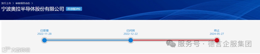 2024年5月27日,上交所公告,因宁波奥拉半导体股份有限公司(以下简称“奥拉股份”)撤回发行上市申请,根据相关规定,终止其首次公开发行股票并在科创板上市审核。