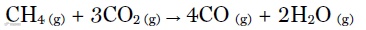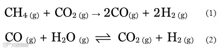 图三,甲烷与二氧化碳“超干”重整反应式。图片来源:Science