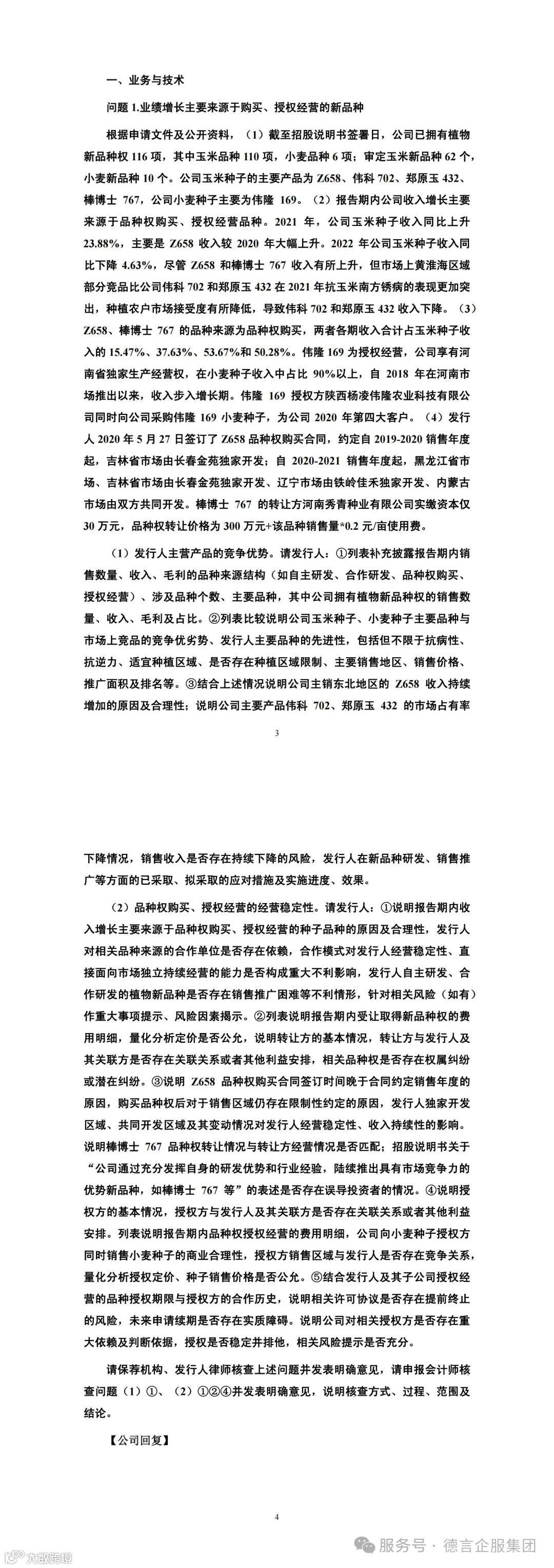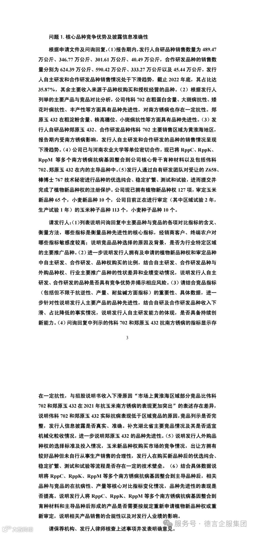 金苑种业IPO进程中审核问询问题中知识产权方面的主要问询点为1【核心品种竞争优势】,上市委在首轮问询中重点问询了: