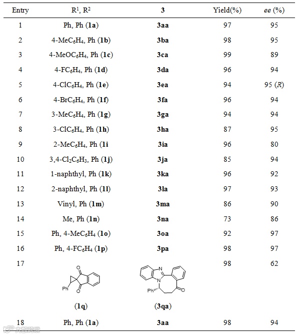 Table 2. 环丙烷类底物拓展