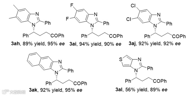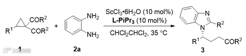 总之,本文作者成功实现了不对称催化环丙基酮与芳基-1,2-二胺的开环/环化/逆曼尼希反应,一步构建了苯并咪唑骨架和实现了其侧链上手性的控制。以优秀的结果得到了手性的苯并咪唑衍生物。