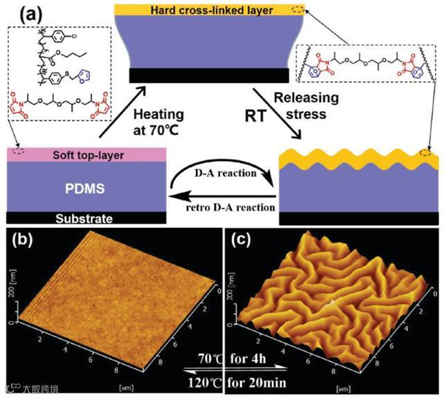 通过可逆DA反应调控皱纹形貌。图片来源:Adv. Mater.