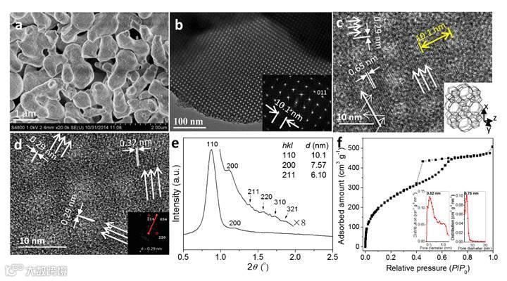 图1. 所制备的高度沸石化(ZSM-5)的有序介孔材料(SBA-16)的形貌以及结构特性