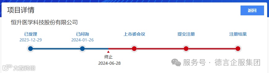 恒升医学北交所IPO于2023年12月29日获受理,2024年1月26日进入问询阶段,2024年6月28日终止审核,共经历一轮问询且未回复。