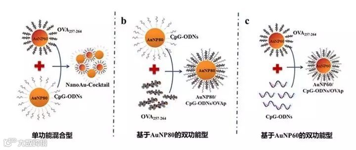 图一 三种纳米载体设计方案将刺激剂与抗原肽同时高效递呈至DCs