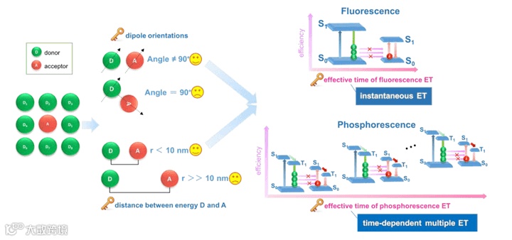 图1. 磷光模式实现能量转移效率提升机理