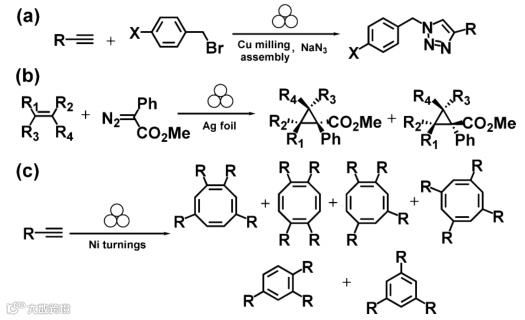 图3. 金属表面催化的机械化学反应。图片来源:ACS Cent. Sci.