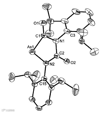 非常有意思的是,2014年,理论化学家Henry F. Schaefer预测氰酸根的重元素类似物AsCO-、SbCO-、BiCO-均有可能稳定存在(Figure 1, Inorg. Chem., 2014, 53, 6252)。近期,AsCO-负离子这一挑战性的工作最终被牛津大学的Jose M. Goicoechea教授突破,相关论文发表于Angew. Chem. Int. Ed.,并被选为封面文章(下图)。(The 2-Arsaethynolate Anion: Synthesis and Reactivity Towards Heteroallenes, A. Hinz and J. M. Goicoechea, Angew. Chem. Int. Ed., 2016, 55, 8536-8541, DOI: 10.1002/anie.201602310)。