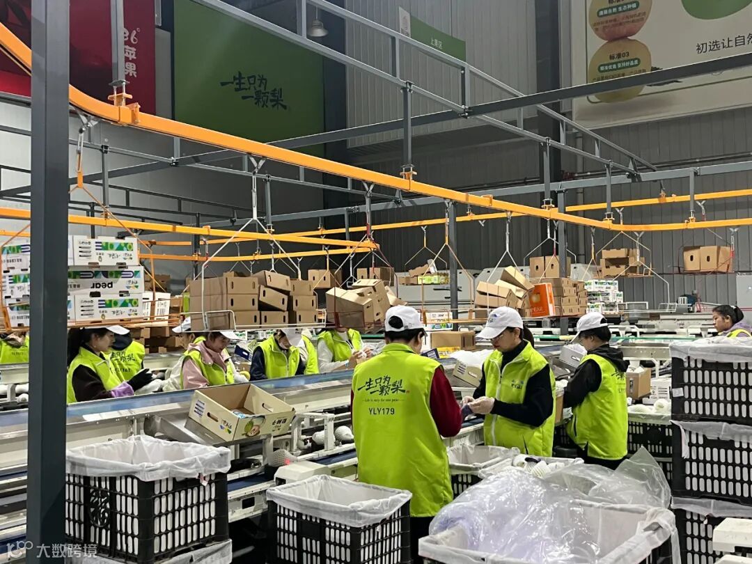 隰县野里垣土特产品开发有限公司(以下简称“野里垣”)的智能选果车间里,一颗颗黄绿色的玉露香梨进入大型智能化商品化处理生产线,不同大小的梨果进入不同的流水线,机器每6秒对梨果拍摄照片进行外观检测,查看是否有果锈、斑点等瑕疵,并通过无损自动化检测来测定糖度。糖度大于13%、红晕度大于30%、果形端正、无瑕疵的大果被认定为特级果或一级果。