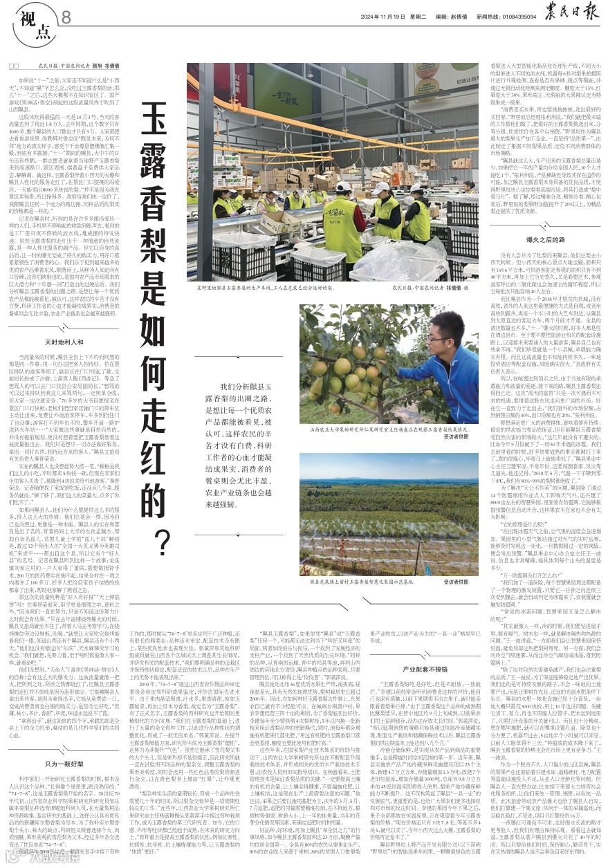 文章来源:农民日报,作者:农民日报·中国农网记者 颜旭 祁倩倩,原题为《玉露香梨是如何走红的?》,经编辑。