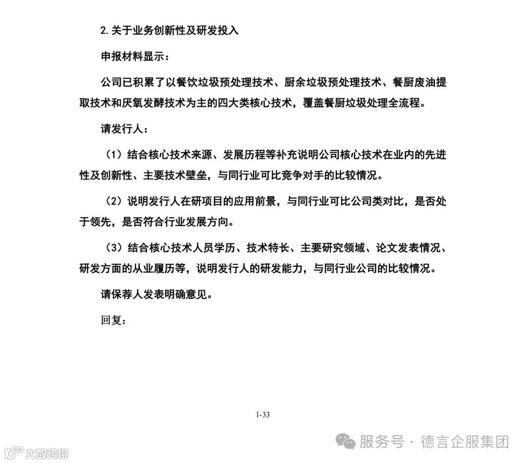本次开诚生态IPO进程中审核问询问题中知识产权方面的主要问询点1为【业务创新性及研发投入】,上市委在首轮问询中重点问询了: