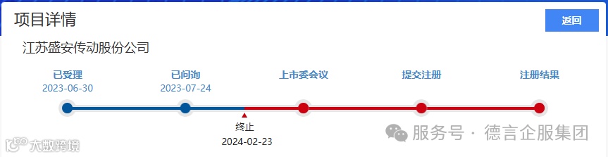 盛安传动北交所IPO于2023年6月30日获受理,2023年7月24日进入问询阶段,2024年2月23日终止审核,共经历三轮问询,其中第三轮问询未回复。