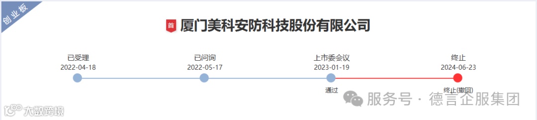 2024年6月23日,深交所公告,因厦门美科安防科技股份有限公司(以下简称“美科科技”)撤回发行上市申请,根据相关规定,终止其首次公开发行股票并在创业板上市审核。