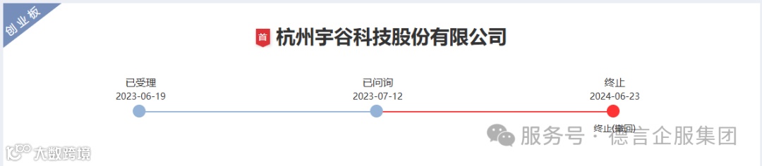 2024年6月23日,深交所公告,因杭州宇谷科技股份有限公司(以下简称“宇谷科技”)撤回发行上市申请,根据相关规定,终止其首次公开发行股票并在创业板上市审核。