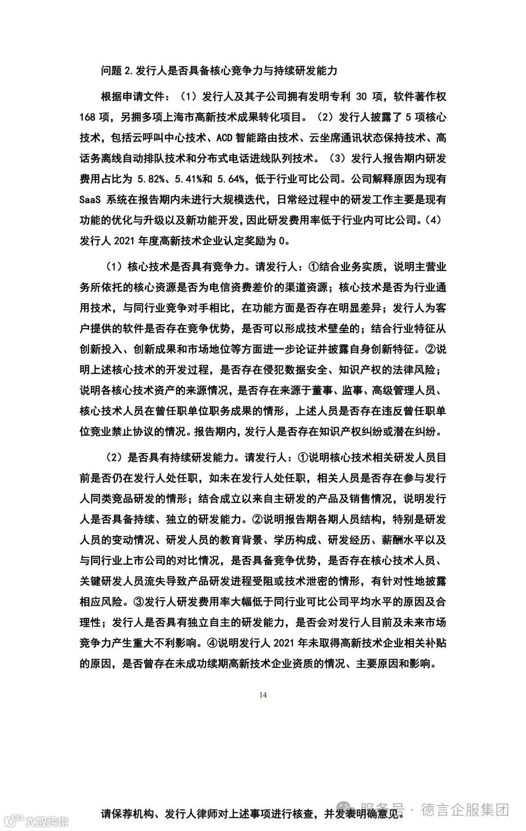 本次商客通IPO进程中审核问询问题中知识产权方面的主要问询点为1【核心竞争力】,上市委在首轮问询和二轮问询中重点问询了: