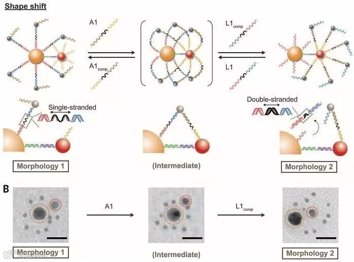 DNA调节纳米颗粒组装体的结构变化。图片来源:Science
