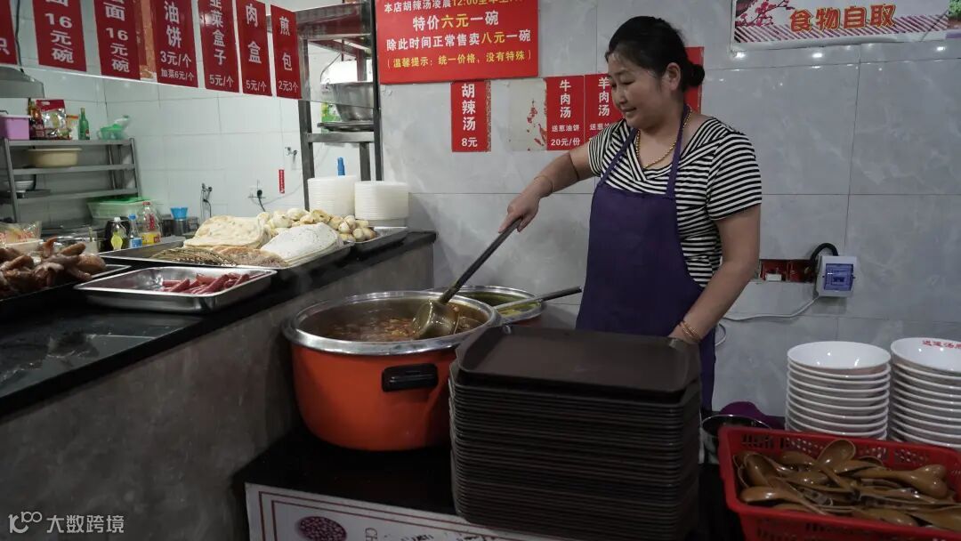 熬过独处的一个多小时,老乡司机们进店后,张迎芸的心才落到实处。天亮前,她能卖掉两大锅胡辣汤,一锅能盛150碗。每天,这间小店给她带来了1000多元的销售额。