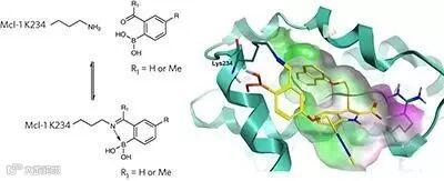 日前,阿斯利康(AstraZeneca)的Neil P Grimster和Qibin Su等人在Nature Chemical Biology上报道了一种羰基苯硼酸类可逆共价抑制剂。该抑制剂可以靶向蛋白Mcl-1(Myeloid cell leukemia 1)的非催化赖氨酸残基Lys234,该类可逆共价抑制剂的发现为基于Mcl-1的药物开发提供了新的方向。要知道,Mcl-1与多种癌症的发生发展相关,例如白血病、多发性骨髓瘤等,而且这个蛋白目前很难通过已有的药物化学策略来进行抑制。(Inhibition of Mcl-1 through covalent modification of a noncatalytic lysine side chain. Nat. Chem. Biol., 2016, DOI: 10.1038/nchembio.2174)