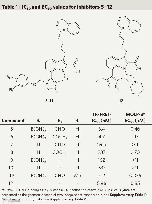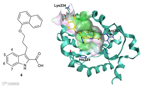 为了设计Mcl-1的可逆共价抑制剂,作者分析了Mcl-1的晶体结构认为Lys234有很大可能被共价修饰。随后,作者利用分子对接技术对基于化合物4设计的共价抑制剂进行了虚拟筛选并最终合成了化合物5和6以及它们相应的对照分子7-12。
