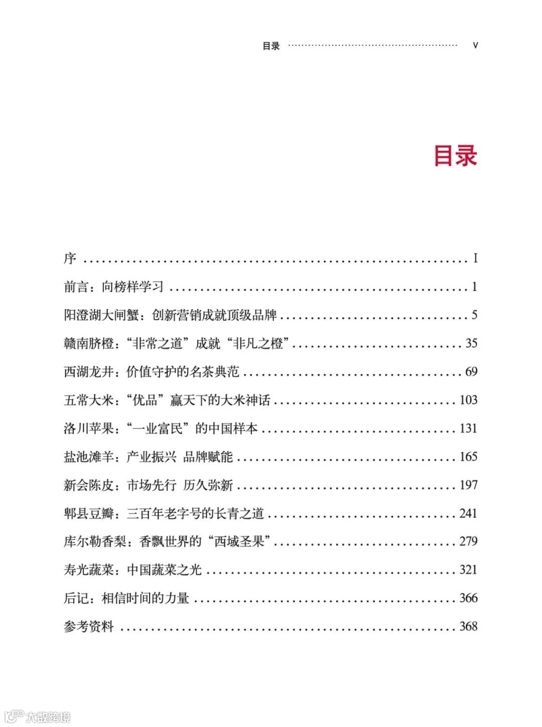 本书研究的阳澄湖大闸蟹、赣南脐橙、西湖龙井、五常大米、洛川苹果、盐池滩羊、新会陈皮、郫县豆瓣、库尔勒香梨、寿光蔬菜等十个农业名牌,是农业品牌建设的中国榜样,它们每一个成功背后都有原因。