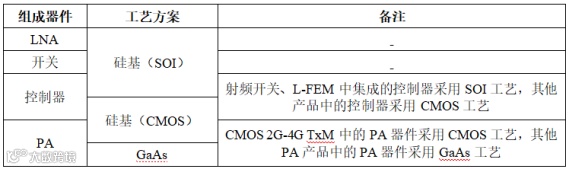 报告期内,公司射频前端芯片的组成器件采用的工艺方案情况如下: