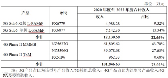 L-PAMiF系发行人当前已量产的5G产品体系中最具有代表性的产品,发行人披露的两款5G L-PAMiF 对比产品报告期各期合计收入占5G 模组收入的22.66%,系发行人L-PAMiF产品中累计销售金额和出货量最高的2款型号;发行人披露的三款4G对比产品报告期各期合计收入占4G PA及模组收入的72.02%,其中FX5196为发行人的4G CMOS PA降本新产品,于2022年开始出货,2022年销售金额较小,实现销售收入962.33万元,对应终端客户华勤技术等,未来与基于砷化镓新架构方案产品共同服务于4G客户,具有一定的代表性。