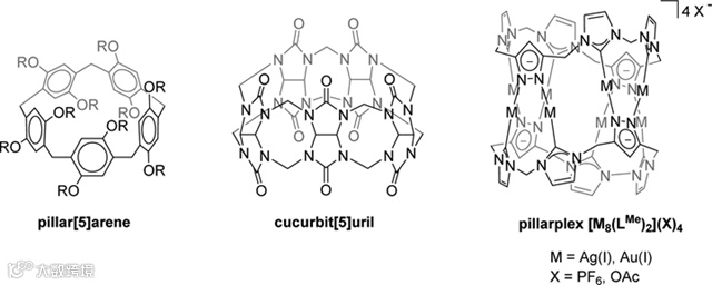 图1. 从左至右,柱芳烃、瓜环、新型金属有机主体。图片来源:JACS