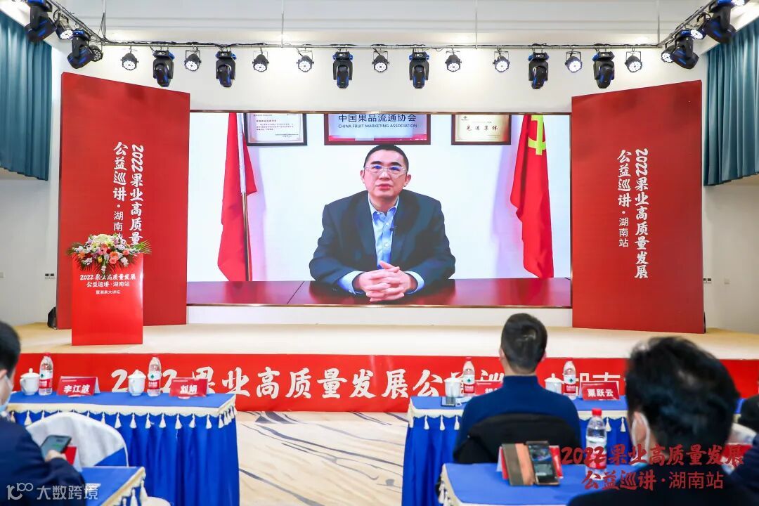 △ 中国果品流通协会会长鲁芳校发表视频致辞