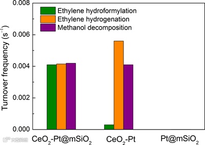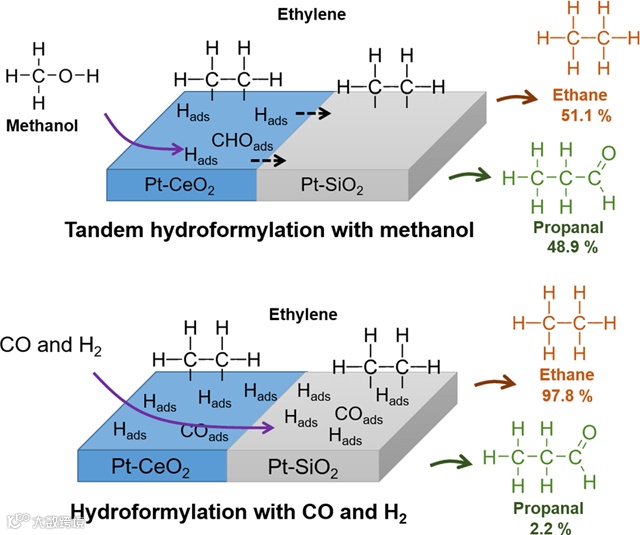 图2. CeO2/Pt/SiO2复合物催化甲醇+乙烯到丙醛的串联反应。图片来源:Nature Chem.