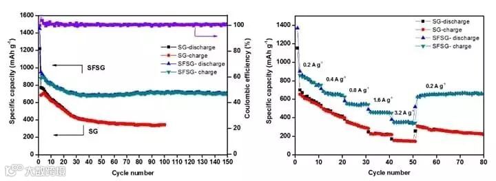 二元复合材料由于具有协同效应而受到广泛关注并被用作锂离子电池负极材料。然而,一部分复合材料,特别是石墨烯基类,其容量会随着电流密度增大而迅速衰减。为了解决这一问题,中山大学化学学院童叶翔教授课题组利用最近利用SnO2@GO二元复合材料作为例子,运用硫-氟无机元素双掺杂的策略提高了这一复合材料的储锂性能。