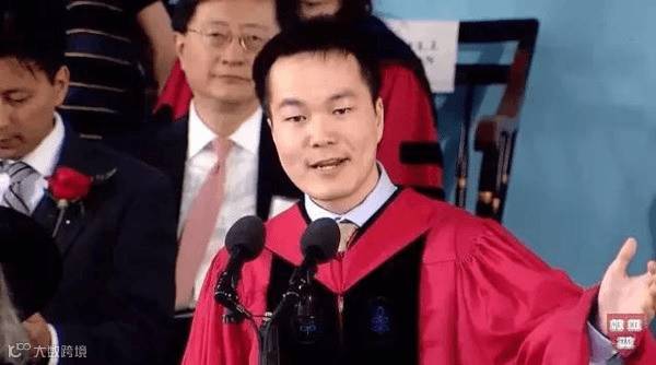 在哈佛大学毕业典礼上演讲的何江博士。图片来源:Harvard University